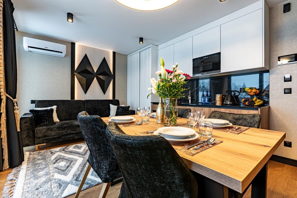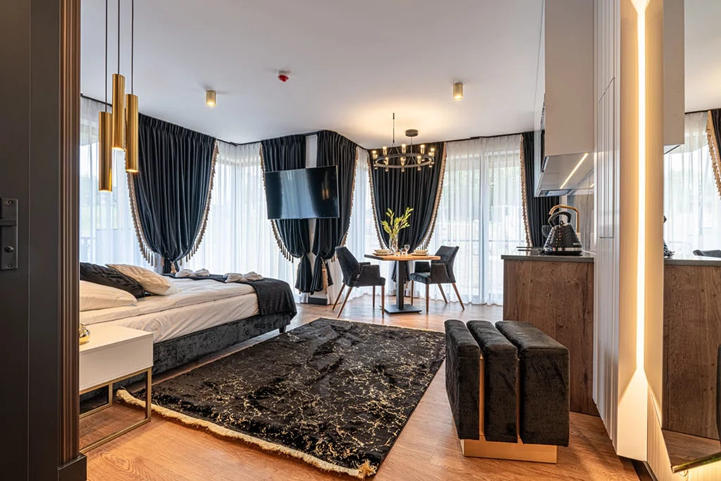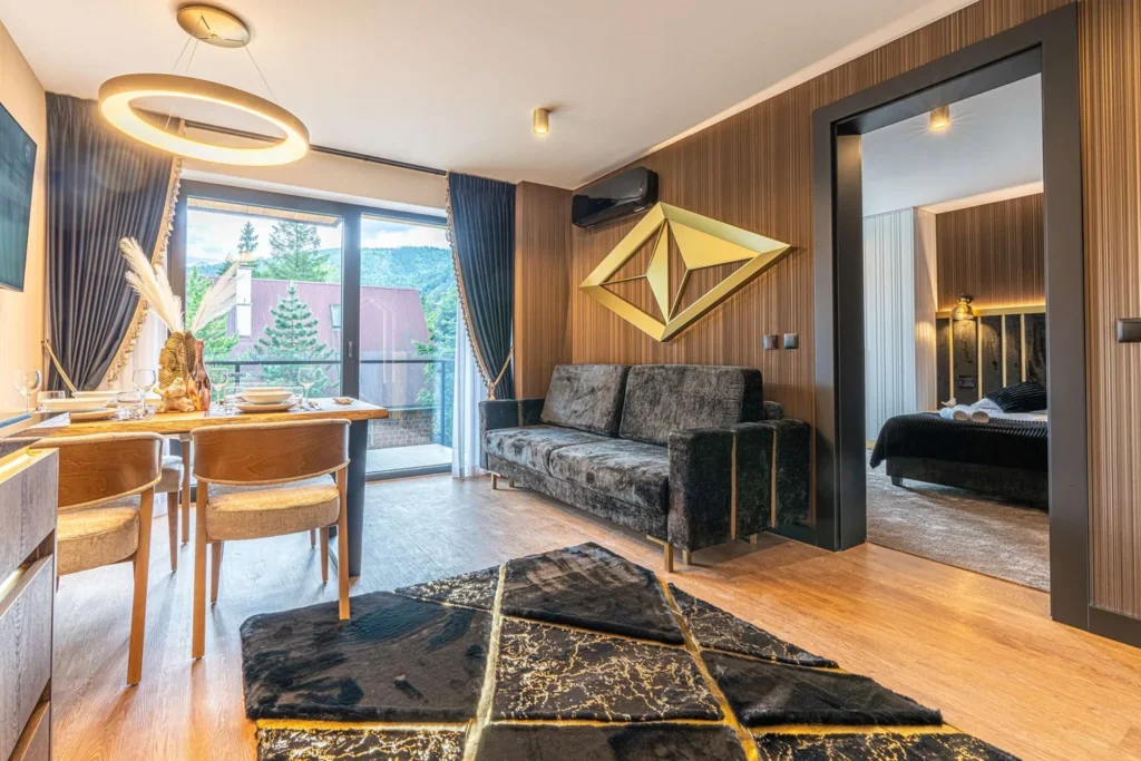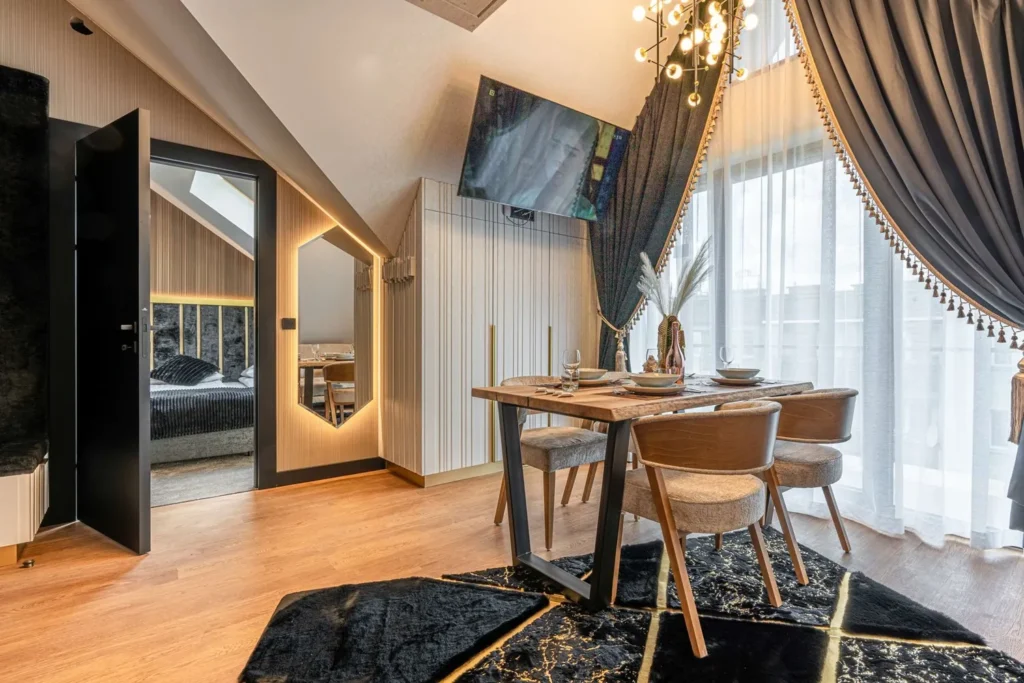 Discover our luxurious aparthotel in Białka Tatrzańska, offering stunning mountain views and a picturesque Tatra meadow. The property features 21 elegant apartments with fully equipped kitchenettes and spacious balconies. Guests can indulge in premium amenities, including a serene SPA zone with saunas and aromatherapy.