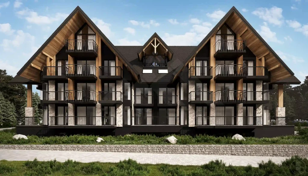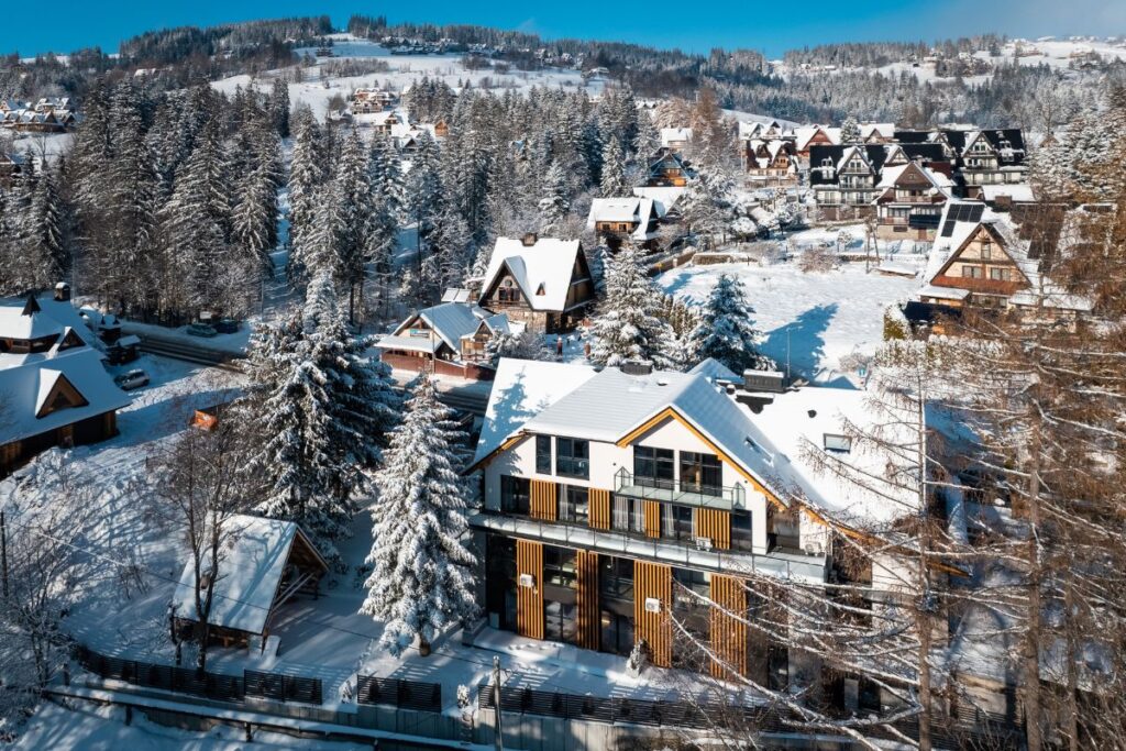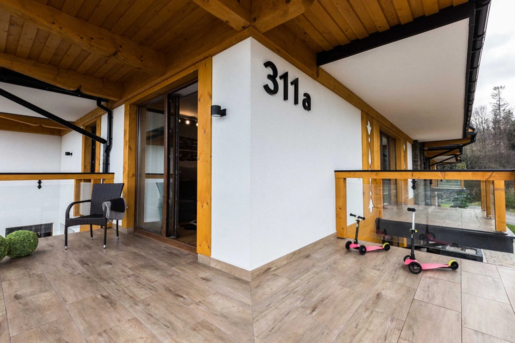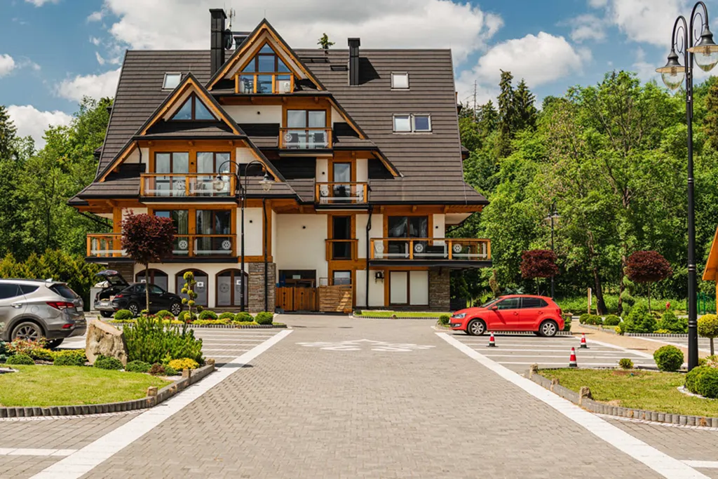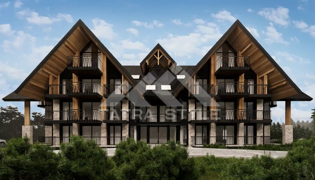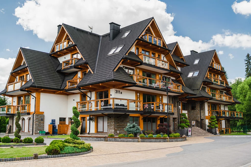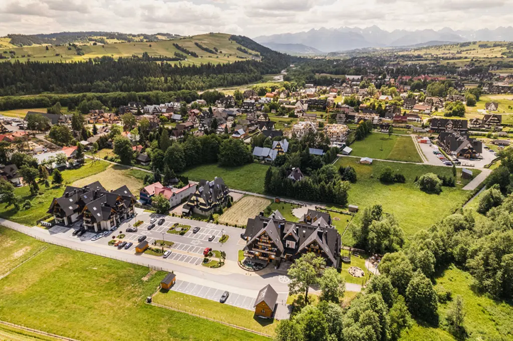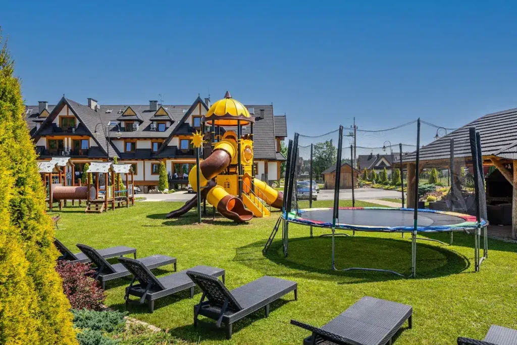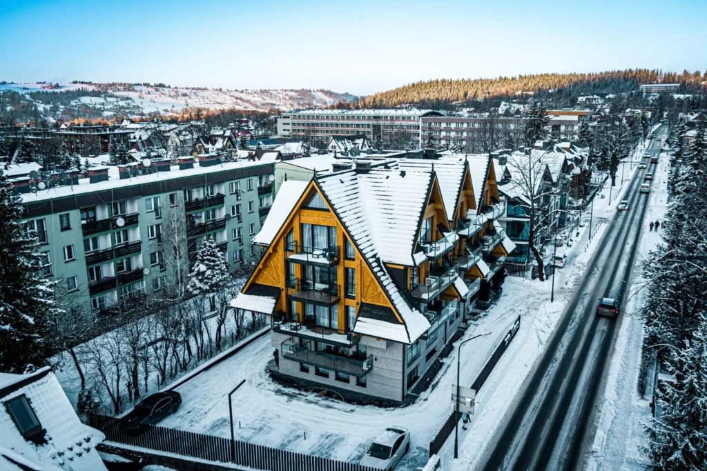 An elegant complex of comfortably equipped apartments with kitchenettes. Perfectly situated in historic Zakopane, it’s just steps from Krupówki, the city center, and the Szymoszkowa ski station. Amenities include a relaxation zone, a children’s playground, large parking, and a covered grilling area.