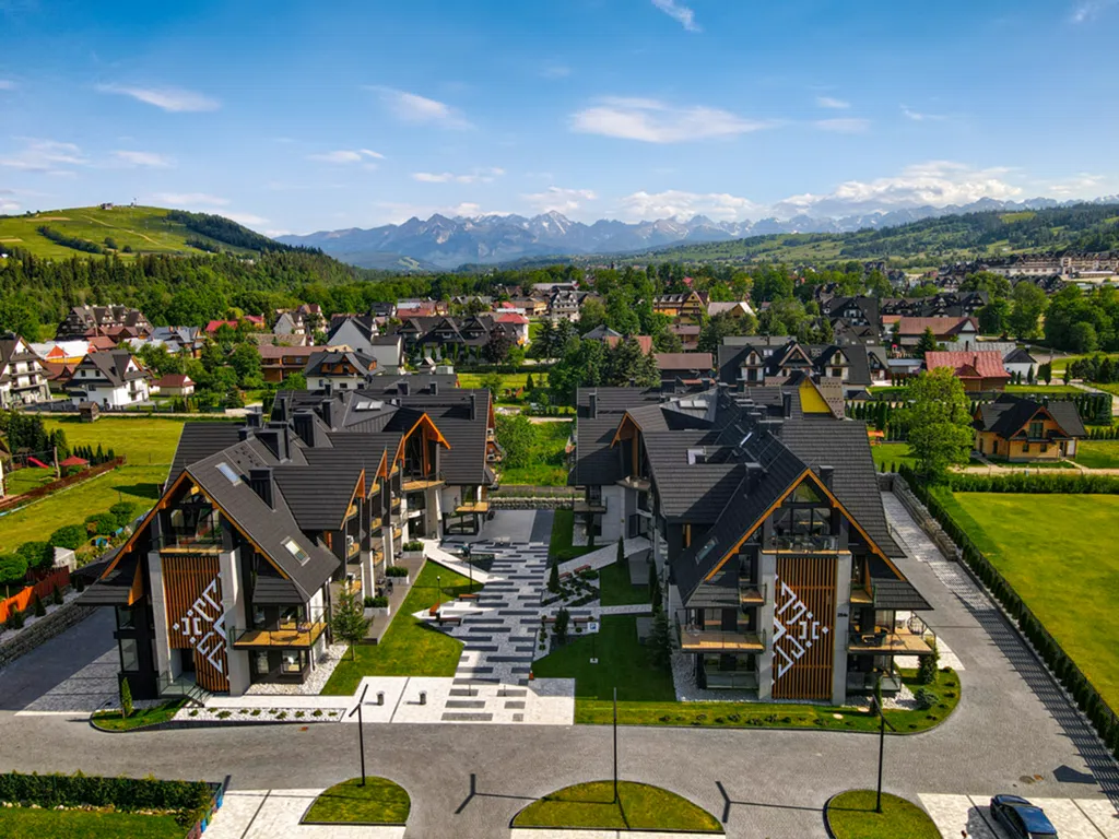 Expanding our Kościelisko complex, new luxury villas offer breathtaking views of Giewont and the Western Tatras. Each building has 12 fully equipped apartments with balconies. Residents enjoy amenities like a relaxation zone, children’s playground, secure sports storage, and extensive green areas.